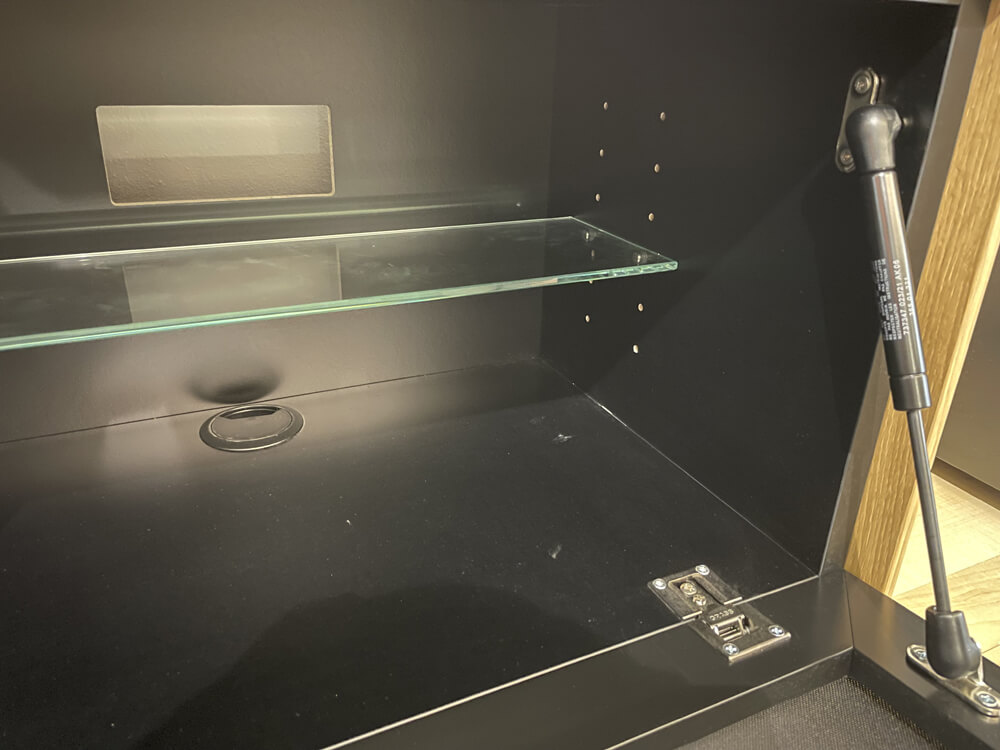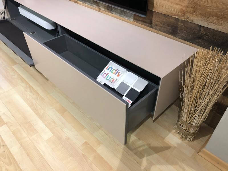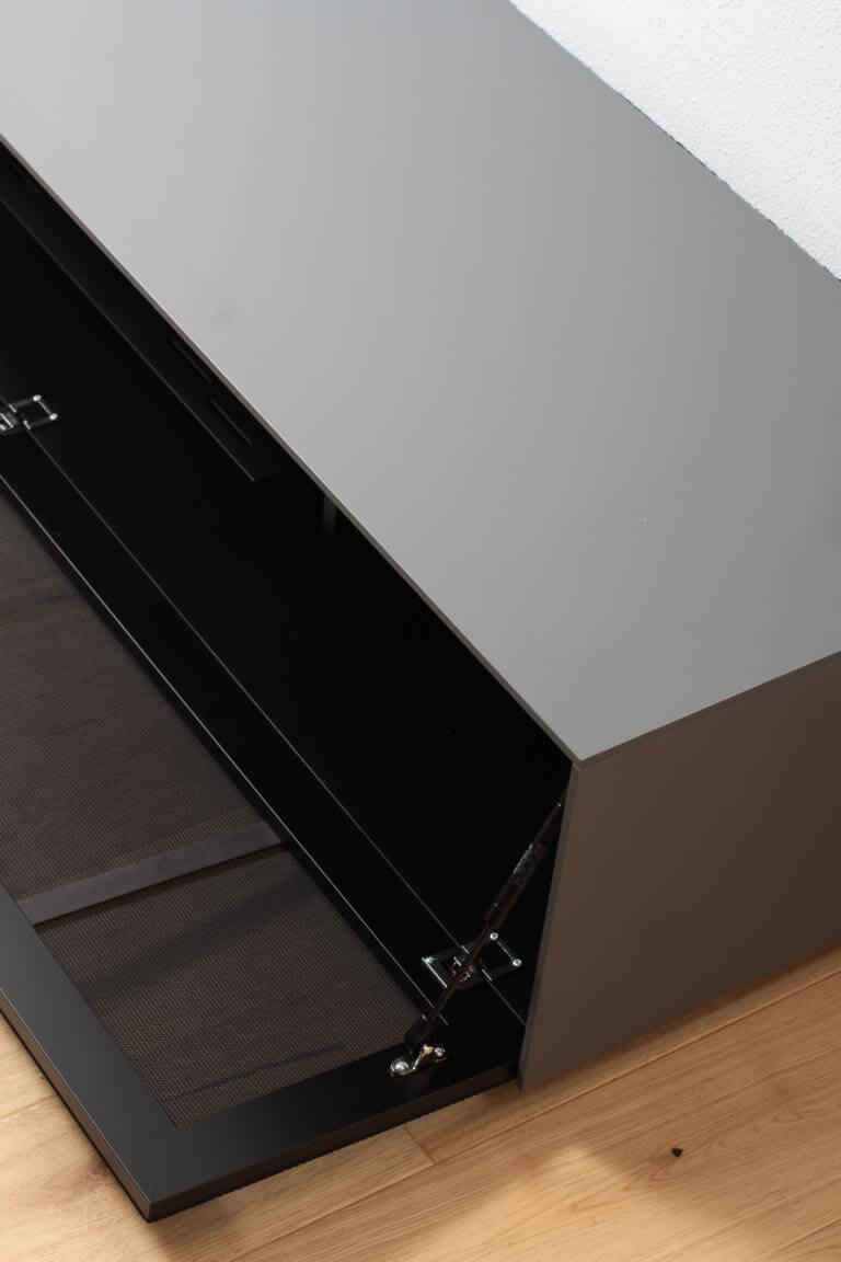 In unserem Monaco TV-Möbel verfügen sämtliche Klappen und Türen über leise Selbsteinzüge sowie Softdämpfung mittels Gasdruckdämpfern. Das komplette Kabelmanagement wird intern im Möbel verlegt und versorgt damit sämtliche Zuspieler wie Bluray-Player, Spielekonsolen, Receiver etc. Die Fronten an diesem Medienmöbel sind grifflos und verfügen über die sogenannte 'Push to open' Funktion. Die Oberflächenhaptik ist wählbar zwischen einer Dekor-Oberfläche, einer seidenmatt lackierten Oberfläche oder aber auch mit dünnen Glasverkleidungen.