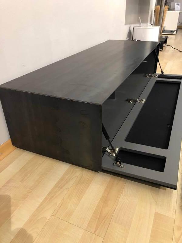 TV-Lowboard aus eigener Designschmiede mit neuer Oberfläche aus Stahl!